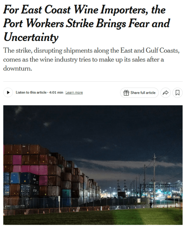 Union leaders were not totally silenced. Since September 24, four ILA leaders have been quoted by the New York Times (9/24/24, 9/26/24, 9/29/24, 10/1/24). For those keeping track, that is two fewer than the six wine importers the Times has quoted in coverage of the port strike (9/30/24, 10/1/24).